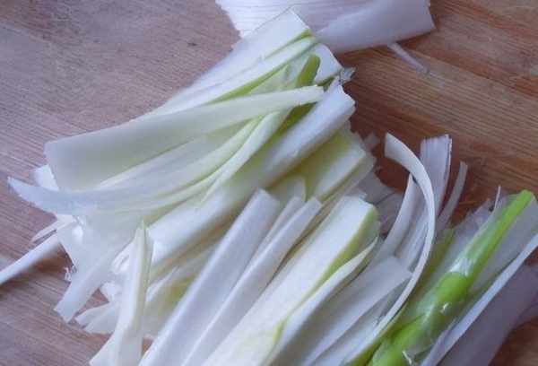 制作過程:第一步,豬肝一塊將其用清水沖洗幹凈,然後去掉豬肝上的筋膜,將其切成片狀,大蔥摘洗幹凈後,取蔥白將其切成絲,然後蔥葉子切成蔥花;