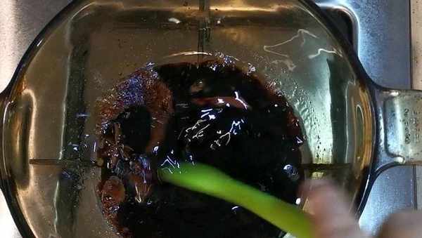 3、接著就是準備關鍵的料汁,準備小鍋一口,鍋中加入生抽醬油兩勺,老抽一勺,少量的油,砂糖,鹽和少量的醋,用小火,一直煮到表面微微氣泡之後,