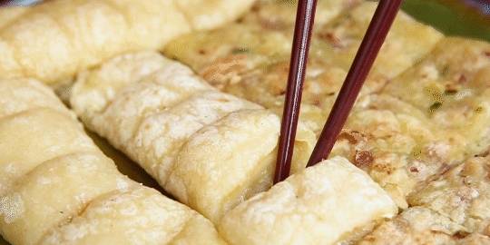 鴛鴦煎薄餐是現揉現做,所以要等的時間也比較久。有咸甜兩種口味,表層有點脆口,內裡軟軟糯糯的。