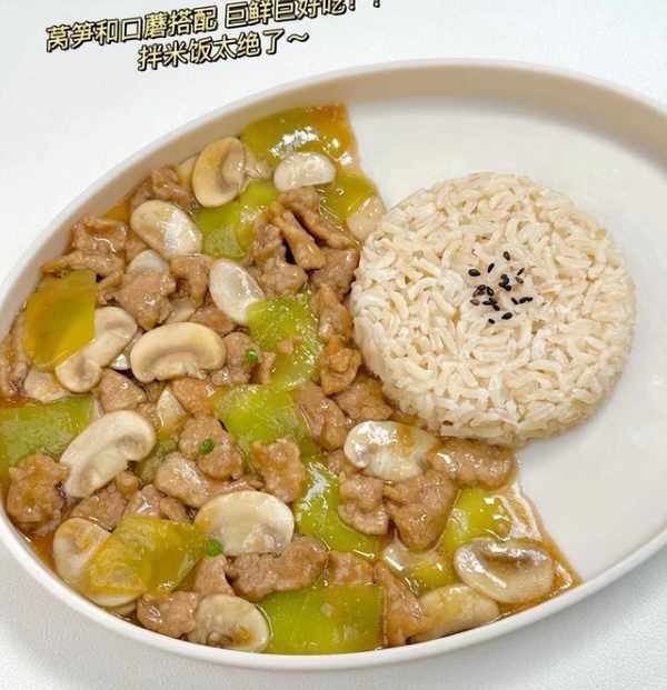 萵筍口蘑炒牛肉是一道時令菜肴,萵筍吃起來清甜爽口,口蘑十分肥美鮮嫩,搭配新鮮的牛肉裡脊,肉質細膩嫩滑,三種食材搭配一起吃,葷素一鍋出,解油膩,補充多種營養成分,讓你順利度過春天。