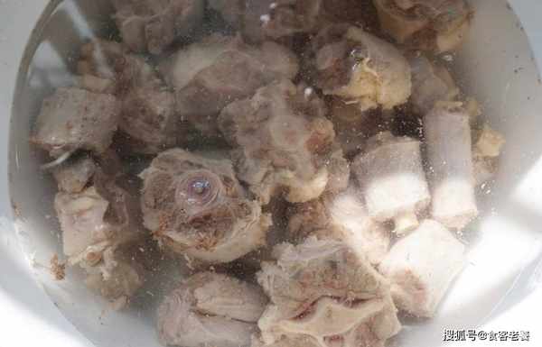 2隨後將牛尾放入溫水中清洗幹凈。這一步切記要使用溫水,因為牛尾在焯水的過程中,肌肉纖維全部打開瞭,如果遇冷水,它很容易就會收縮,這樣之後煮出來的肉質就會發柴。