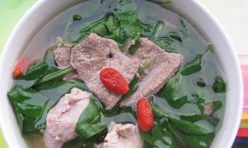做法:先將枸杞子葉洗幹凈並把其梗和葉子分開,將所有的材料都洗幹凈,然後先將枸杞子葉、枸杞子梗放到鍋子,加適量水,用猛火燒開,然後在用文火煮40分鐘,將枸杞子梗拿出來,然後把切好的瘦肉放下去,在煮5分鐘,再把枸杞子葉也放進去,其後加入油、食用鹽等調味品3分鐘後就可出鍋瞭。