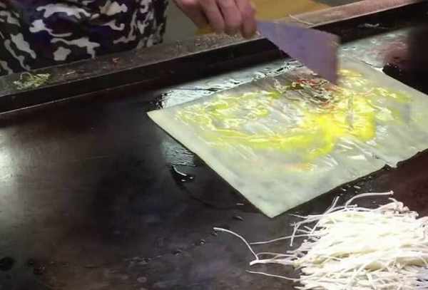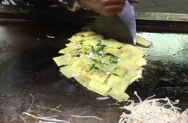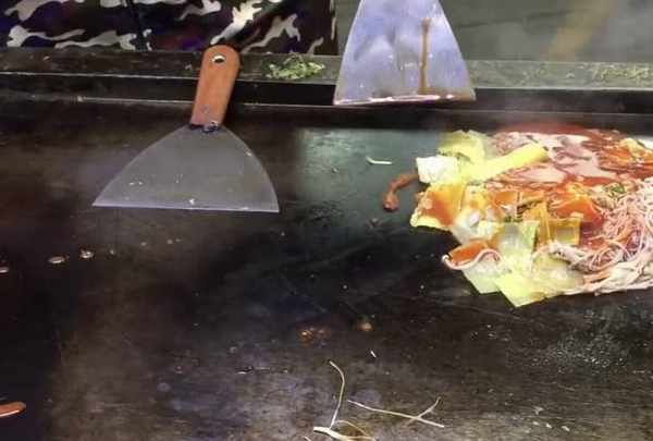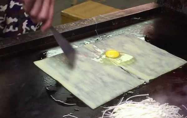 其實烤冷面加金針菇也是可以的,隻不過很少有人做這樣的烤冷面!這個小夥的金針菇烤冷面也算是個比較有創意的美食瞭,七塊錢一份年輕人都排隊買!做這樣的金針菇烤冷面也比較簡單,先在鐵板上加熱冷面板,等它稍微變得柔軟瞭就磕個雞蛋上去!