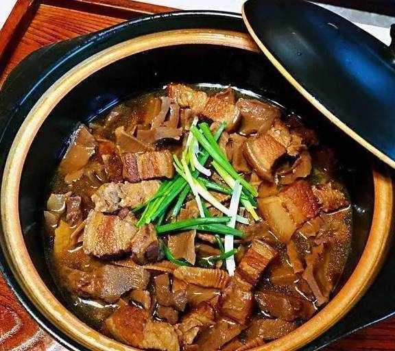 ?食材:豬五花肉500克;筍幹適量;蔥4根;薑半塊;生抽;老抽;糖;雞精