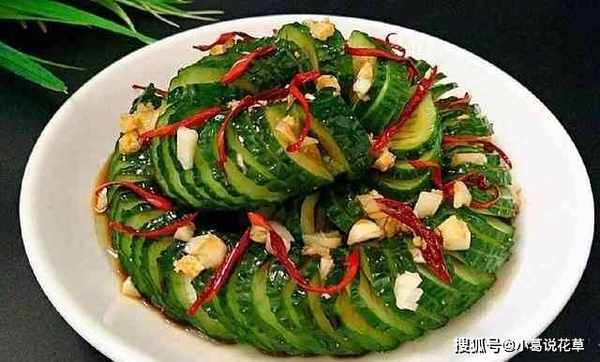黃瓜洗凈,黃瓜洗凈,切掉頭尾,然後從頭切,斜著切,切黃瓜深度的三分之二,不要切,切的時候傾斜40度左右,切整條黃瓜。將黃瓜切面朝上,再次開始切,這次垂直,90度。切黃瓜深度的三分之二左右,不要切,黃瓜切片。將切碎的黃瓜放在盤子裡,撒上鹽(撒),然後醃制約20分鐘。