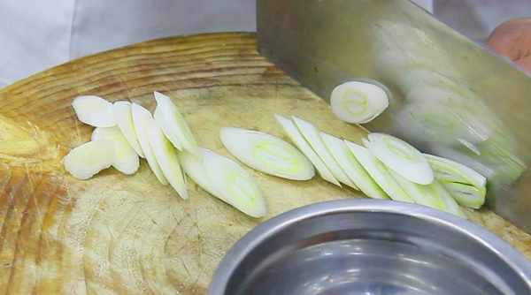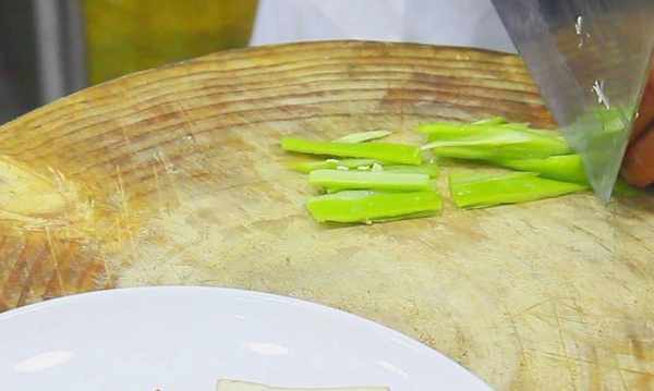 準備大蔥白一段,切成馬蹄片。