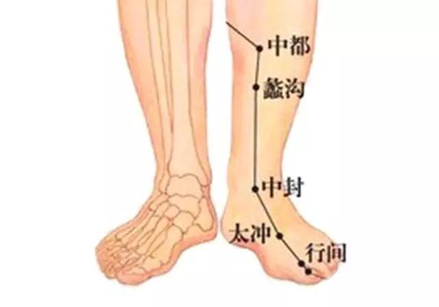 按揉中封穴,可清瀉肝膽,保養精血,通利下焦、舒筋通絡。