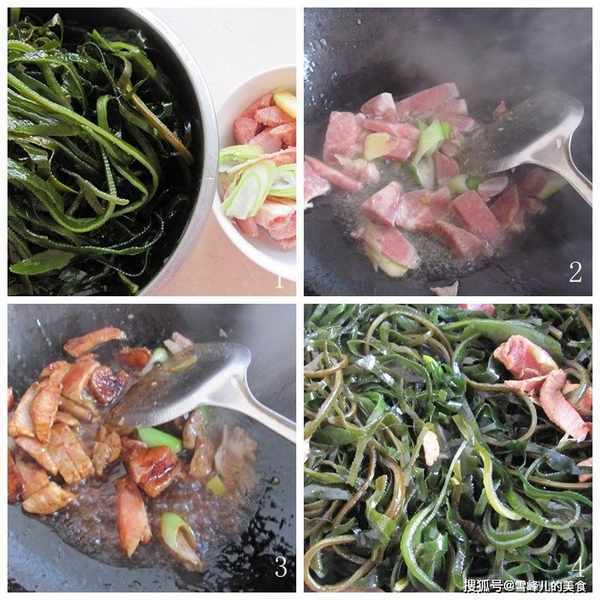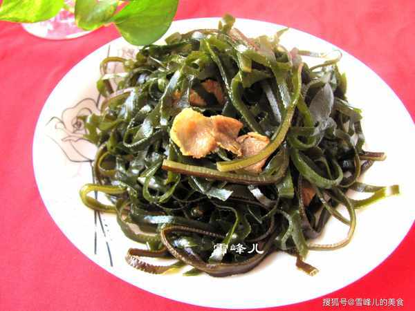 肉片炒海帶的做法:材料:新鮮海帶半根,豬肉適量,蔥段,薑片,醬油,鹽,花生油。