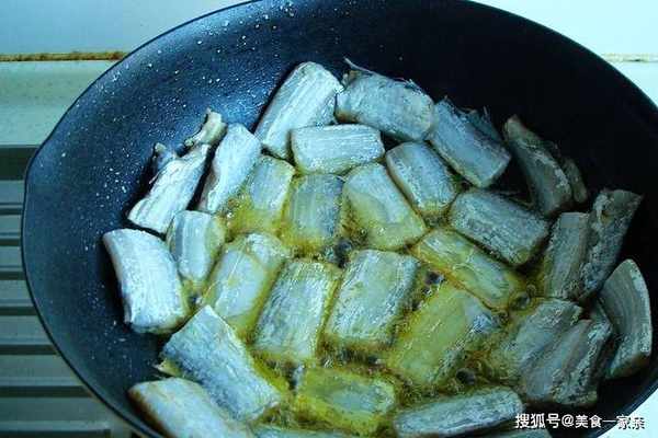 6、中小火煎至兩面金黃色,把煎好的帶魚撥在一邊