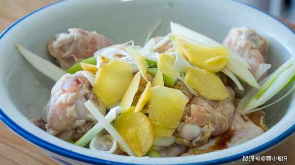 1、小雞腿,清洗幹凈後加水泡1個小時,把裡面的血水全部泡出來,接著我們來切點大蔥和生薑,大蔥和生薑都是去腥的,切好後先放一旁;