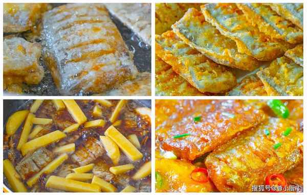 5、全部裹好後起鍋倒油,適量的多倒一些,油溫6成熱下入帶魚炸。接著再依次將所有的帶魚段放進油鍋炸,油溫一定要高,隻有高油溫才能使帶魚快速定型,等帶魚定型後再翻動,帶魚才不會爛。