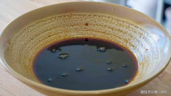 2、現在做調料,2勺料酒、2勺生抽、1勺老抽、1勺蠔油、2勺蜂蜜、再加少許清水,攪拌均勻後醬汁就調好瞭;