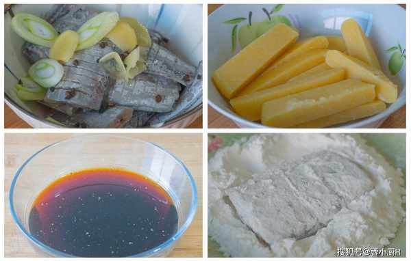 1、帶魚段1斤,加水清洗幹凈,然後瀝幹水分,兩面打上花刀,然後再切小段,處理好後裝入碗裡。接著切點蔥薑,大蔥和生薑分別切片,然後和帶魚裝一起,再來一小把花椒,一勺鹽一大勺料酒,抓拌均勻後醃制30分鐘,可以去腥入底味兒。