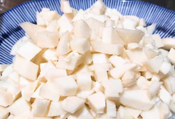 制作過程:第一步,糯米事先用清水沖洗幹凈,控水待用,“1白”筍剝皮,洗凈後,切成丁,“1黑”香菇,同樣也切成丁,“1綠”新鮮豌豆粒準備出來;