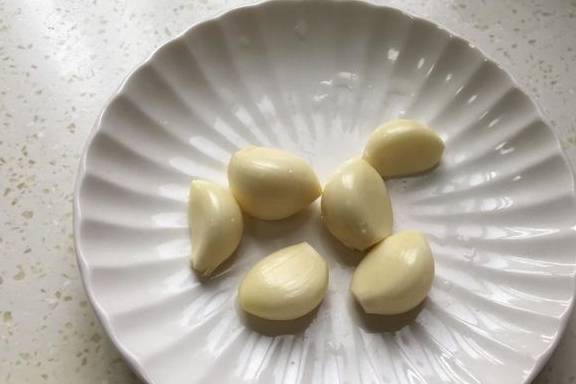 2.大蒜去皮清洗幹凈備用,如果不是很喜歡蒜味,可以少剝一點,或者等菜燒好以後將蒜夾出來;