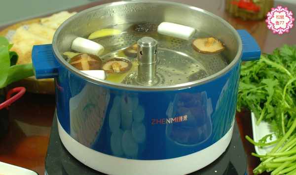 6、吃火鍋,我就喜歡清淡一些,外賣的火鍋湯底我從來不買。3片生薑、3個蔥段,5個泡發的香菇,組成一個清淡可口的火鍋湯底。