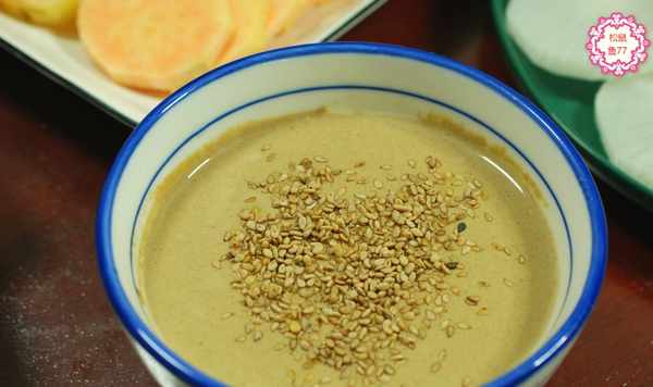 3、火鍋的調料N多種,對於一個北方人來說,最喜歡的還是這種傳統的芝麻醬蘸料。麻醬用純凈水細細調勻,加點豆腐乳的湯汁,再加點兒炒得香香的白芝麻,那味道,絕瞭!