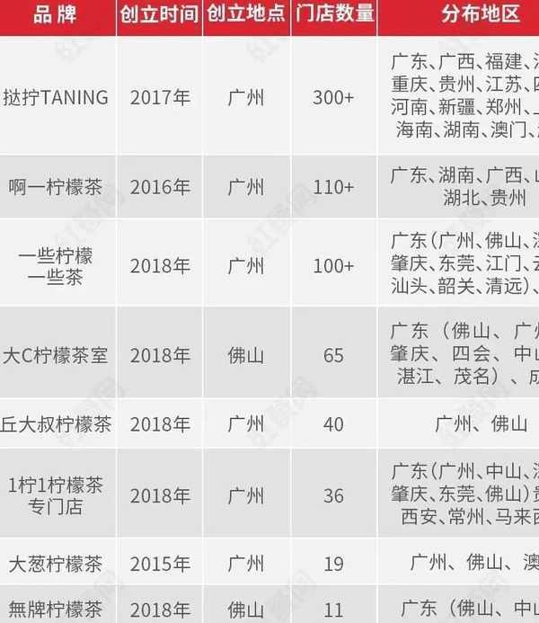 在廣東頭部的檸檬茶店,如撻擰、丘大叔等品牌最多的已經開出瞭300+門店,但其中98%都集中在廣東,並以廣州、佛山、深圳為主要根據地。即便是廣東內的三四線城市,其檸檬茶店的數量也能超越北京、上海這兩座超級大城。