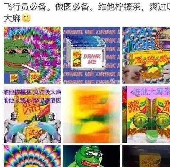 而且維他檸檬茶成為網紅也是在16年左右,通過魔性的表情包和那句“維他檸檬茶,爽過吸大X”的段子走紅。最近也有很火的便利店調酒,就是用維他檸檬茶搭配小酒版調制雞尾酒。