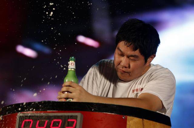 現在的他喝完一瓶啤酒僅僅需要3.8秒。