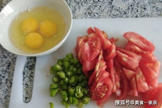 雞蛋3個、杭椒6個、西紅柿2個、白糖1勺、精鹽少許、生抽半勺、細香蔥少許