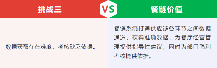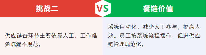 餐廳的供應鏈管理,從采購到倉庫以及整個流程的成本管理,這是一個閉環。如果是一傢夫妻店這個閉環很容易完成,但隨著企業規模的擴大,門店發展到三傢、十傢、幾十傢甚至更多之後,對信息的傳達就提出瞭很高的要求,中間有一個環節數據不通暢,就會拉低整體的運轉效率。