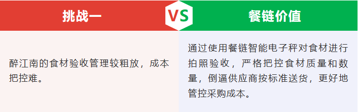 除瞭驗收,供應鏈各環節都要有對應的要求和規范,隻要把所有環節、細節都做到位,自然而然就會降本增效。通過餐鏈,醉江南優化瞭各環節操作流程,讓供應鏈管理更加規范化。