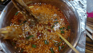 串串牛肉在小鍋裡涮起來,