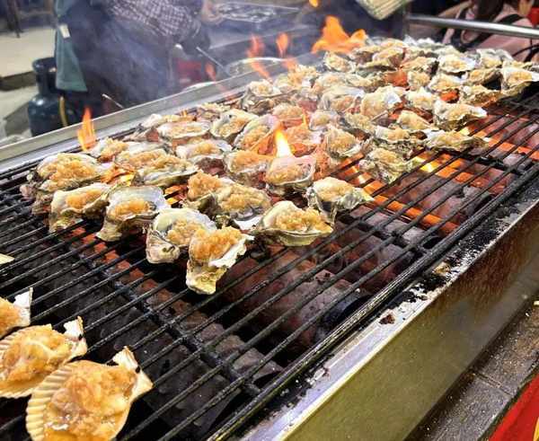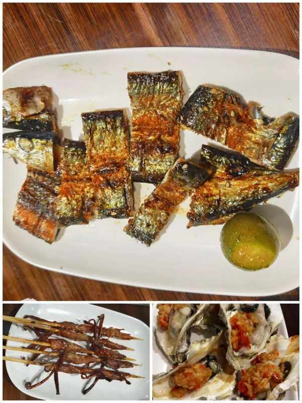 吹著微涼的海風、吃著烤制的海味