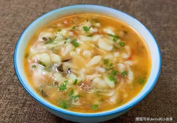 最後倒入剪刀面、雞蛋快速翻炒片刻,這道美味就做好瞭。若不想吃幹的,可以煮成湯的也很不錯,更好消化。