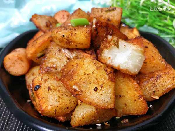 每一塊土豆都裹滿瞭醬料,相當入味,外層吃起來焦香,咬開裡面沙沙綿綿的,好吃就不說瞭,關鍵比油炸的健康多瞭,吃瞭沒有心理負擔