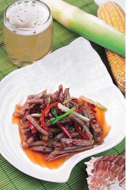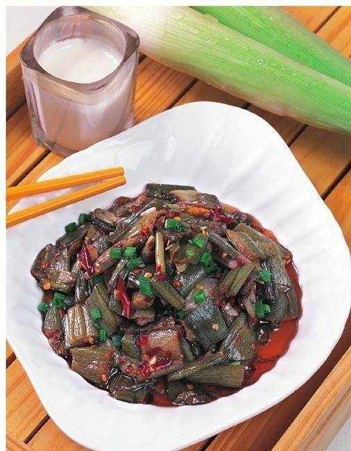 調料:植物油、鹽、味精、豆瓣醬、辣妹子辣醬、蠔油、幹淀粉、白糖、香油、紅油、幹椒段、蔥段、薑絲、紅椒絲。