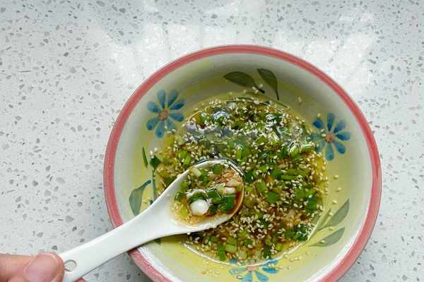 3、關於調料汁潑多少油合適,看下食材有多少,一般植物油的用量,要沒過食材,這樣熱油潑下去才能激發出蒜香蔥香。