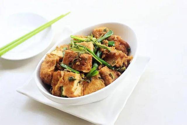 主料:香椿兩顆、老豆腐500克輔料:植物油、鹽、生抽10克、薑5克、香蔥一根、雞精1克、面粉、雞蛋一個做法:1、把蔥薑洗凈切好,香椿洗凈去掉老的部分,老豆腐切大小一樣的塊,瀝幹水分2、把香椿下到開水裡,燙到變色撈出來,過涼水洗凈擠幹水分切末,這樣可以去掉多亞硝酸鹽3、把豆腐先到面粉裡面滾均勻,一定得多幾下,這樣面粉把豆腐均勻瞭4、雞蛋提前打散攪拌成雞蛋液,再把豆腐加到雞蛋液裡面滾幾下,多滾幾下,豆腐塊就比較均勻粘雞蛋液瞭,也可以再到面粉裡面滾幾下,看個人口味瞭,這樣豆腐比較香酥一些5、熱鍋涼油,油燒到7成左右,加豆腐塊,炸到定型以後6、來回翻拌幾下,把豆腐炸到金黃色撈出來7、鍋底留底油,加蔥薑末炒出香味,下炸好的豆腐塊翻炒均勻8、加入生抽翻炒均勻,出醬香味以後9、加入鹽翻炒均勻,再加清水翻炒均勻,燒一會10、加點雞精翻炒均勻11、撒上香椿末翻炒均勻12、撒上香蔥段即可出鍋瞭,香味濃鬱的豆腐就炒好瞭,有著雞蛋的香酥,也有香椿的醇厚香味,真是特別入味好吃。