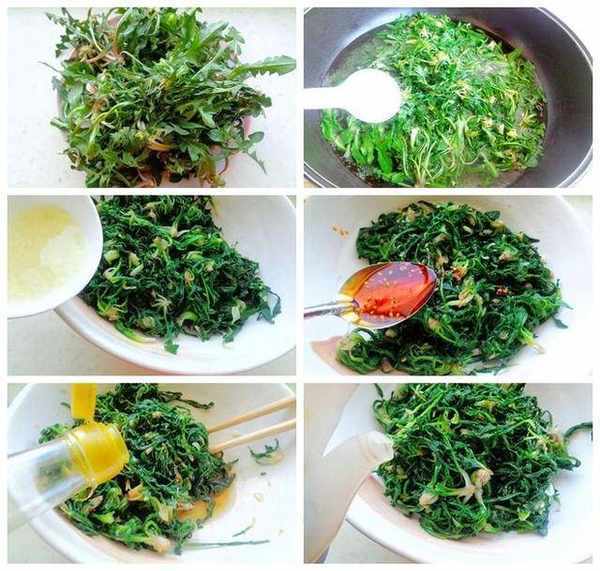 主料:蒲公英500克輔料:鹽、大蒜、白糖,辣椒油、香醋做法:1、把蒲公英去掉老葉粽子根部,因為根部比較苦,洗凈2、下到開水裡加少許的鹽,燙到變色立刻撈出,千萬不可久燙,要不太軟瞭,不好吃,撈出來以後立刻下到涼水裡過涼,撈出擠幹水分3、大蒜去皮用搗蒜器搗成蒜泥,這樣可以加少許涼開水拌一拌,做成蒜味汁4、做調味汁,取一小碗,加涼開水和鹽、白糖拌均勻