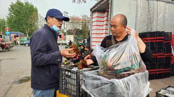 市場現在銷售的香椿產地主要有山西和河北,均是露地生產。銷售山西香椿的崔先生告訴記者,春節前後香椿的價格一度曾經漲至150元/斤,現在10元/斤的價格相對那時的價格整整縮水15倍。自己傢這一車香椿400多斤,基本上一天就能賣完。而整個市場每天的銷售量加起來不低於2000斤。從數據來看,隨著香椿價格的降低,銷售量也越來越大。而銷售河北香椿的袁先生指著車上所剩不多的貨表示,自己這一車貨都被提前預訂走瞭,現在隻剩下這一點貨。