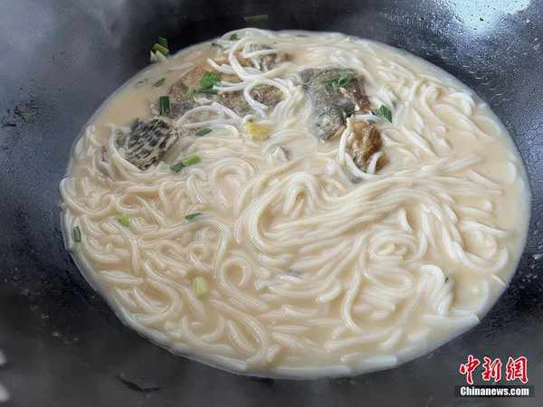 將打好花刀的鱖魚煸至兩面微黃,加入清水,待湯色煮至奶白色,加入江西米粉。聽著米粉與魚湯沸騰起咕嚕咕嚕的聲音時,一道鮮美嫩滑的菜肴便可上桌瞭。