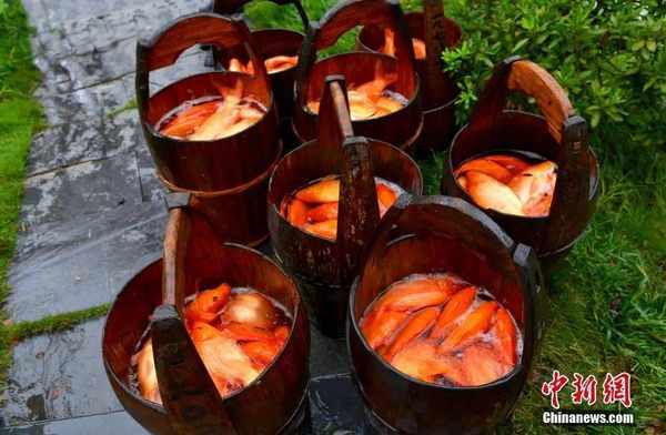 奶白的魚塘加上桂魚,至鮮無比。在江西婺源,還有一種荷包紅鯉魚,通體紅艷,背寬腹大,是當地獨特的魚種。