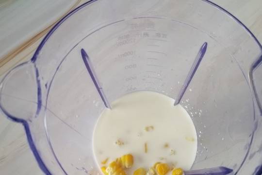 3.玉米粒牛奶倒入料理杯中
