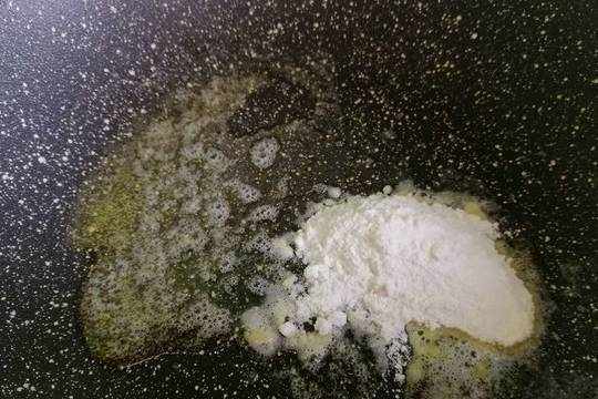 6.鍋裡放黃油融化,放面粉快速攪動