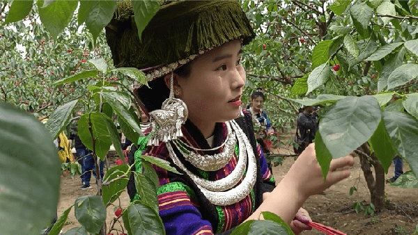 4月13日,晴空萬裡、朵朵白雲下,處處映襯著萬綠叢中點點綴紅的櫻桃,高山上、田地裡、水渠邊、公路旁,放眼望去,一道道靚麗的風景映入眼簾。
