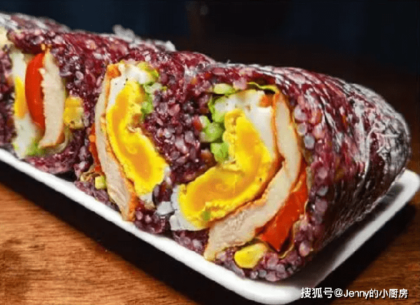 全部弄好後,給案板上鋪保鮮膜,放入蒸熟的糙米飯,再依次放入玉米粒、生菜、油醋汁或者沙拉醬、煎蛋、雞胸肉、西紅柿、糙米飯。