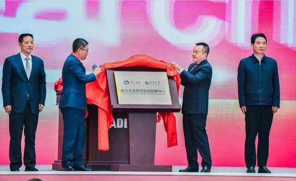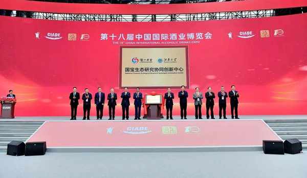 開幕式上,由瀘州老窖和江南大學合作共建的國傢固態釀造工程技術研究中心“國寶生態研究協同創新中心”正式揭牌。