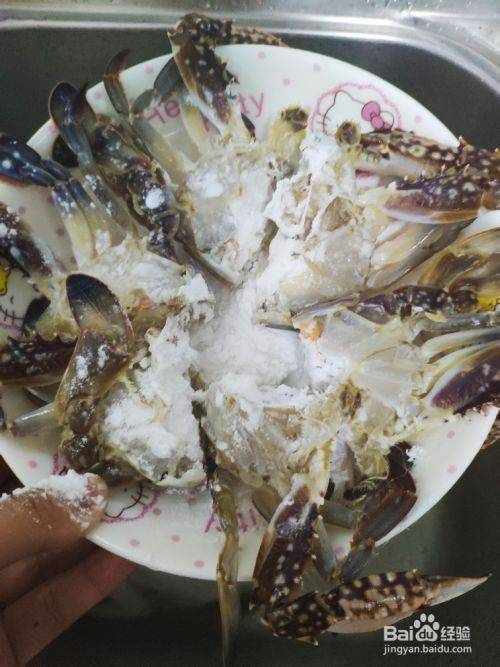 5.熱油,放入蘸有淀粉的蟹肉塊中,凝固