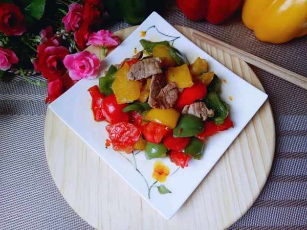 【彩椒蠔油炒肉片】