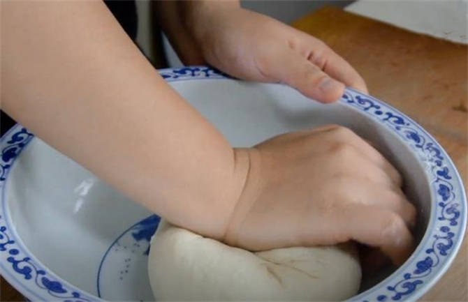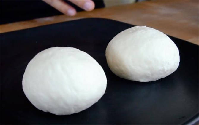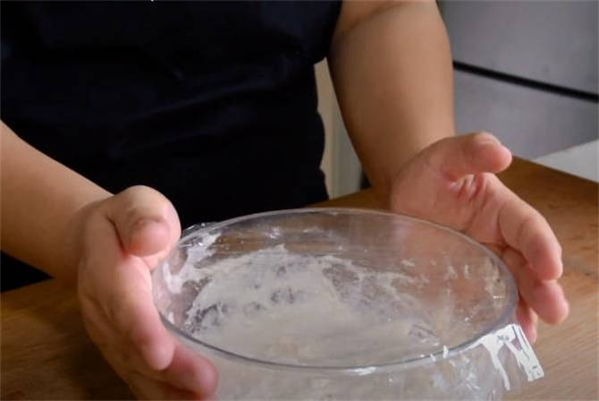 4.把面劑在掌心搓成一個小圓球,搓好後直接放在盤子裡,表面封一層保鮮膜餳發半個小時。