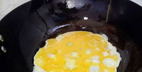 鍋底倒入少許底油,熱油倒入雞蛋液,快速翻炒均勻。