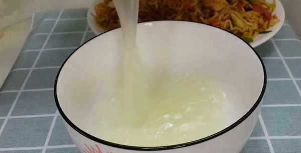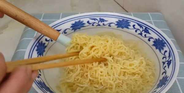 碗內倒入涼水,放入方便面,撈出筷子攪拌,撈出控水。