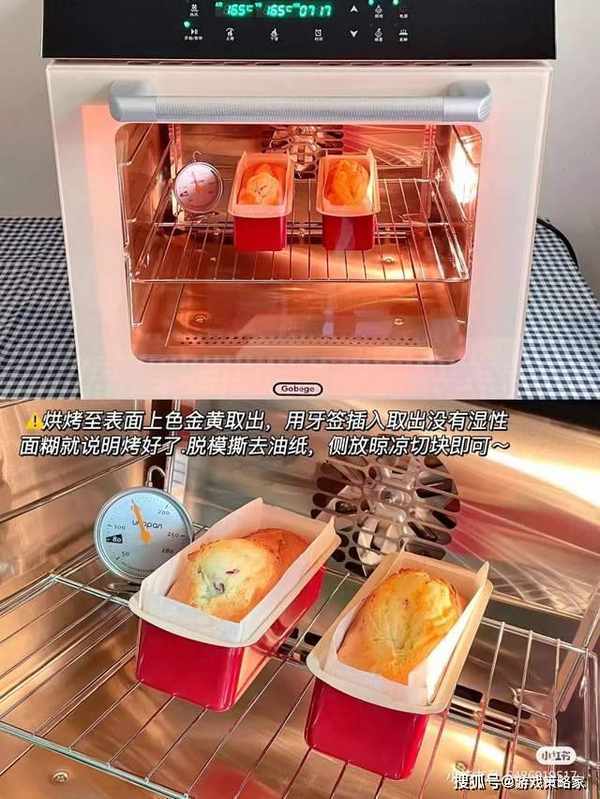 將模具放入預熱好的烤箱中下層,上下火165°烘烤30分鐘.(烘烤到15分鐘時取出中間劃一刀有助於膨脹塑型)這裡用的80S風爐/模具放在中下層利於烘烤,普通烤箱放中層.烘烤溫度和時間需按自傢烤箱溫差靈活調節哈~