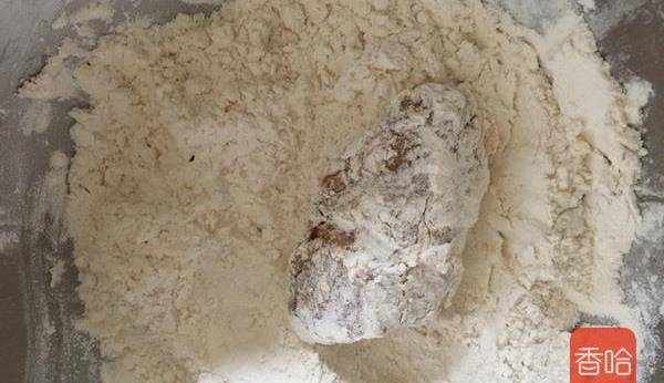 4.雞翅放入裹炸粉中,面粉粘的均勻一些!